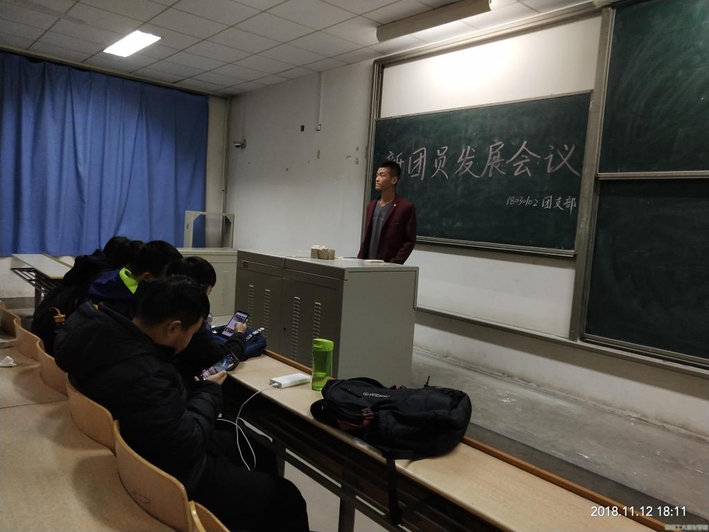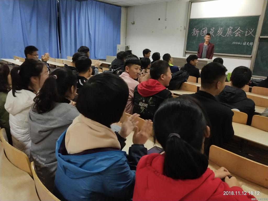 18030103团支部于2018年11月12日在教二-307分别召开新团员发展大会。韩国a片团委副书记甄子清以及团支部全体团员参加了本次大会。