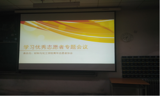 在学生会青协部长刘麒的主持下,会议开始。首先,一个视频导入让大家了解什么是志愿者,视频中每个人说的“我是志愿者”勾起了大家对志愿活动的向往。随后,刘麒为大家详细介绍:志愿者是什么、参加志愿活动后的好处、志愿者精神和志愿者服务理念。接着,用一个短片让大家了解一些优秀志愿者事迹。献血、捐助失血儿童、坚持三年去福利院和珠峰捡垃圾等志愿活动令大家十分触动。另外,刘麒还为大家介绍了他与付贵一行人去亭南村支教的经历和感受。最后,刘麒倡导大家学习志愿精神,积极参与到志愿活动中。至此,本次会议圆满结束。