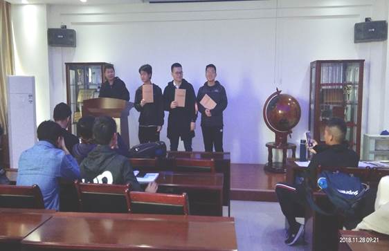 本次班会由团支书张苏主持,她总结了高数期中考试和英语入学水平考试的整体情况,并督促同学们大学的课程完全要靠自己来学习。接下来由学习委员康备和综合委员郝思雨发言,他们对期中考试期间班级情况再次进行总结并提议班级学生周内到在小广场早读。在班会最后,班委对期中考试前三名:强竞赛、唐钰钊、李帅提出表扬并颁发奖品,希望各位同学们能像这三名同学学习。