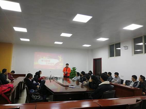 回归常识。要围绕学生刻苦读书来办教育,引导学生求真学问、练真本领。对大学生要合理“增负”,提升大学生的学业挑战度,激发学生的学习动力和专业志趣,改变轻轻松松就能毕业的情况,真正把内涵建设、质量提升体现在每一个学生的学习成果上。16030103班班长尹思博带领同学们阅读相关文字资料,关于“苦读书”“乐读书”两点进行讲解,班会现场气氛活跃。