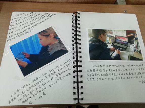 支部全体成员通过观看《平“语”近人--习近平总书记用典》系列短片全集、参观红色根据地等多种其他相关方式,通过在党支部成员收集相关材料,组织撰写文字,结合每位党员前期学习的成果以及总结,采用党支部成员自学的记录加上自己学习感悟的作为材化学生第二党支部党支部会议精神再领悟的学习成果,并且制作成纪念册加以保留,目的是为了将我们学习到的精神与自身实际紧密联系的这种方式保留,为以后支部新成员的学习做一些资料。
