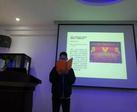 学生第二党支部于2018年12月19日在工3-404举行了“诵读习近平总书记爱国语录,弘扬时代精神”主题活动,学生第二党支部全体党员、18030105团支部和18030206团支部全体支部成员参加了此次活动。