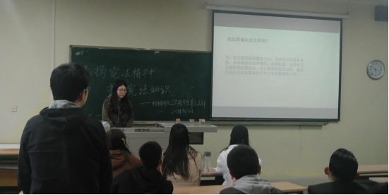 本次会议由支部副书记李姝姝主持,会议第一项是首先介绍有关全国各地普及宪法知识的活动,包括我国宪法的发展历史。随后开展会议讨论,刘振方同志介绍了我国宪法的地位,指出宪法是国家根本大法,是治国安邦的总章程,具有最高的法律地位、法律权威、法律效力。大会第二项由组织委员王智成同志带领大家宣读宪法誓词,通过一起诵读,从心里来激发学生党员来维护宪法的权威,始终履行法定职责的决心。至此本次组织生活会圆满结束。