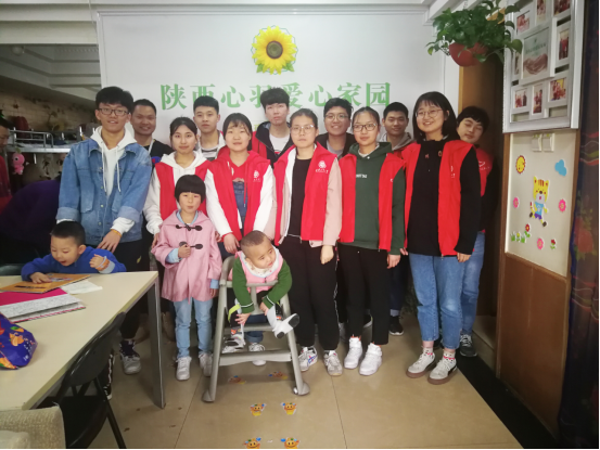 3月23日早晨7时40分,志愿者队伍在学校西门集合完毕。在青协主席刘麒的带领下,志愿者队伍携带着为孩子们采购的一些水果及生活用品开始前往莲湖区陕西心羽爱心家园。到达目的地后,心羽爱心家园的管理人员先为我们简短介绍了内部各个家庭患儿的情况以及心羽家园建立的过程。随后,志愿者们与孩子们一起愉快玩耍,手把手教他们写汉字和画画涂色。虽然这些孩子们都患有不同的身体疾病,但在志愿者的眼中他们和身体健康的孩子一样,一样的天真可爱、活泼开朗。志愿者们希望通过他们的努力,将幸福阳光融入这个充满爱的大家庭。最后,志愿者们与孩子们一起合影留念。至此,本次活动圆满结束。