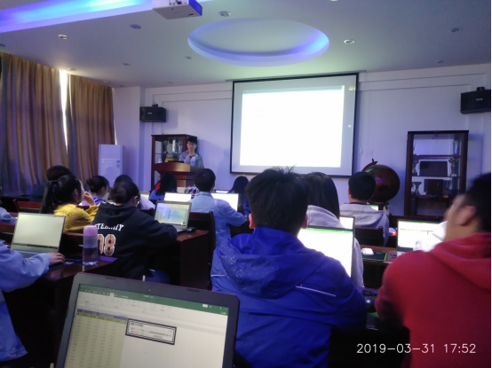 培训开始前,参与培训的全体成员有序坐定,做好准备等待培训会开始。随后副主席车枭采用PPT结合雨课堂进行培训,参训人员可以在自己的微信公众号上看到屏幕上所播放的PPT,并保存在记录里方便之后的学习。每个人可以在自己携带的电脑上进行每一项技能的实践,以加深理解,便于记忆。紧接着,车枭对Excel进行简单的介绍,并对其中需要注意的细节展开详细的说明,例如,简单计算、函数和条件格式等方面。每次讲解后他都会询问参训人员是否掌握并进行演示,所以在场的每个人都收获颇丰,学习掌握不少技能。最后,车枭对本次培训进行总结,并与参训的各部门干事相约之后的多次培训。至此,本次培训圆满结束。