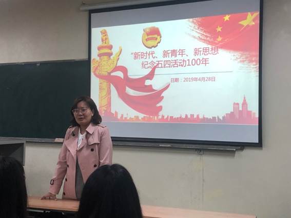 2017级学生代表在工3-504召开纪念五四运动100周年专题学习会议,此次会议由2017级辅导员刘强珺老师主持。