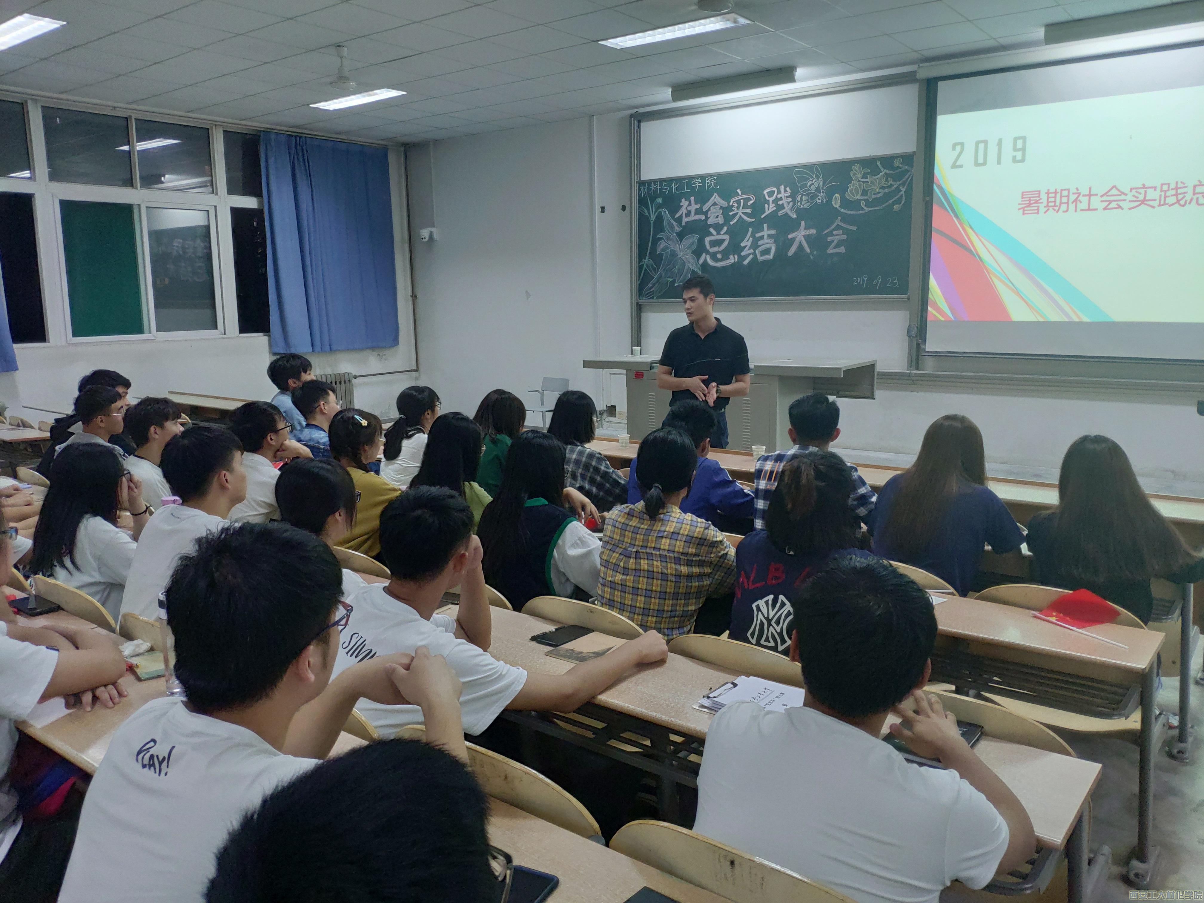 于2019年9月23日在教一-302召开社会实践总结大会。会议由团委书记段强老师主持,团学组织全体干部参加本次会议。