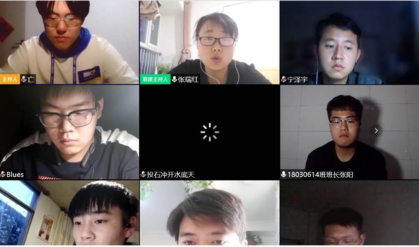 在2018级辅导员张瑞红老师的主持下,““停课不停学、学生云工作”促进正式开始。首先,辅导员张瑞红老师把近期日常工作、年级学生每日健康打卡以及学生学习生活等年级工作情况做了阶段性总结,并对学生干部的要求提高,按时保质保量完成任务。第二项,辅导员张瑞红老师详细听取了各班班长在“云班会“、学生日常学习、工作情况的汇报。最后,辅导员张瑞红老师对班级工作给予肯定,并同时提出各班级目前出现的问题,要求学生每天按时完成健康打卡,并强调了学生自纠自检自查自律的重要性。对班级班长的责任意识、组织意识、纪律意识进行强调,关键时期警钟长鸣,对学生干部学习和工作时间合理分配给予指导,,绝不松懈,绝不放松,要把工作负责到底。