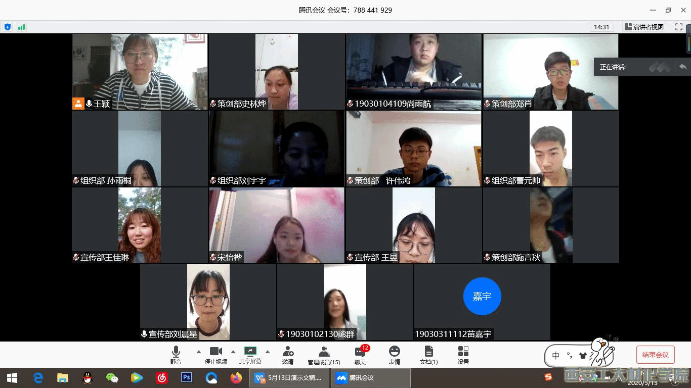 团委于2020年5月13日晚19:30在线上组织开展主题为“习近平在中央政治局常委会议研究应对新型冠状病毒肺炎疫情工作时的讲话”的理论学习会。