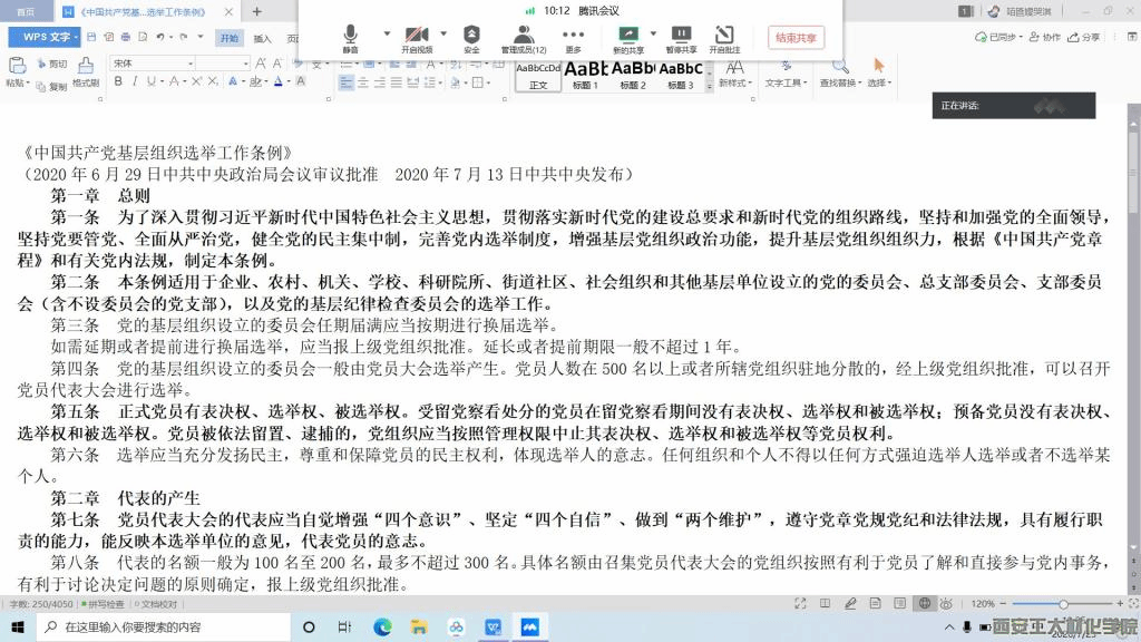 第三党支部线上组织学习《中国共产党基层组织选举工作条例》。支部书记段强老师以及支部全体党员参加此次组织生活会。本次活动由支部副书记杨静主持。
