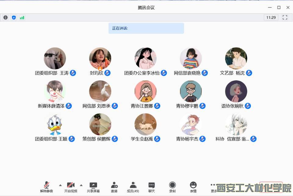 团委于2020年8月6日下午19:30召开工作经验交流线上会议,本次会议由宣传委员封玙欣主持,全体团学干部参加本次会议。