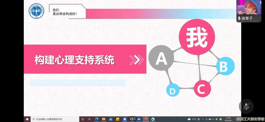 最后,徐慧子用一段失去右腿的汶川地震幸存女孩的视频引入了生命的意义,告诉大家我们每个人都是由奇迹构成的,要健康的成长,爱自己、爱别人,明白决定我们自身的不是过去的经历,是我们自己赋予经历的意义,拥有被讨厌的勇气,做好自己,以健康的心理品质为基础,实现个人的全面发展。